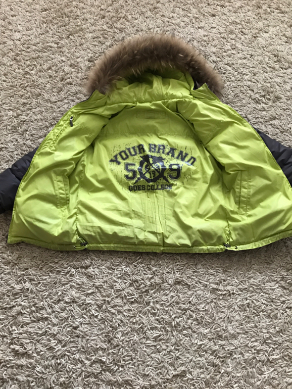 Пуховик двусторонний, р.36(134-144), очень красивый, пух набит очень хорошо, мех густой, отстегивается, в низу можно утянуть, в идеале -2400