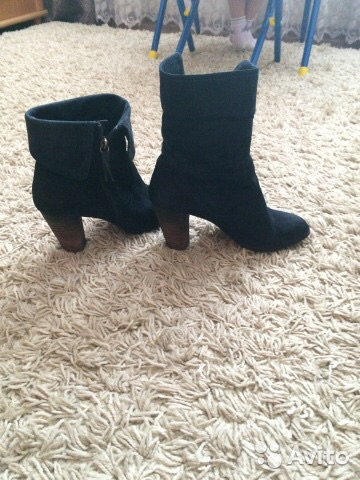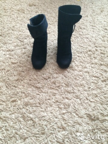 ботильоны р. 37, темно-синяя замша, утеплены байкой, на молнии с противоположного бока, очень оригинально смотрятся, можно подворачивать, каблук устойчивый 8см, в отличном состоянии - 1000