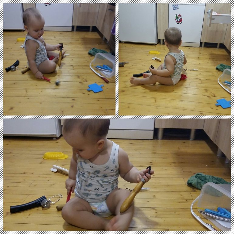 Спина отваливается уже ходить и подбирать все((( каждый день все выглядит примерно так... и это еще самый чистый кусочек нашей квартиры... когда приходит время готовки, то все венчики и пр..приходится искать по полу))) иногда нахожу засунутыми в сапоги))))