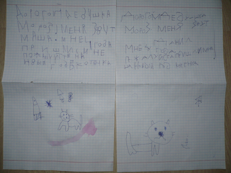 Вчера Мария подошла ко мне и сказала, что хочет попросить Дедушку Мороза прислать ей на Новый год котёнка. .И попросила помочь ей написать ему письмо.