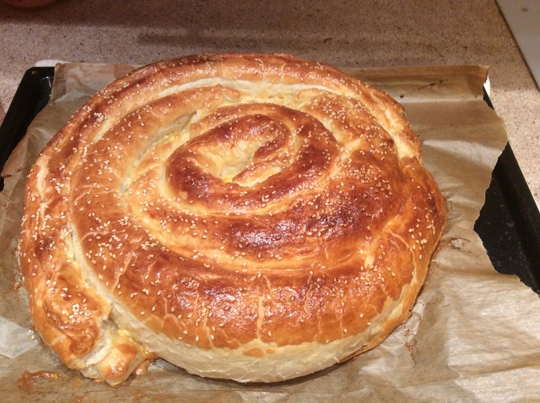 2 пачки слоеного теста+сыр на терке и закрутить рулетиками. Помазать желтком и присыпать кунжутными семечками. В разогретую духовку 220 градусов на 15 минут.