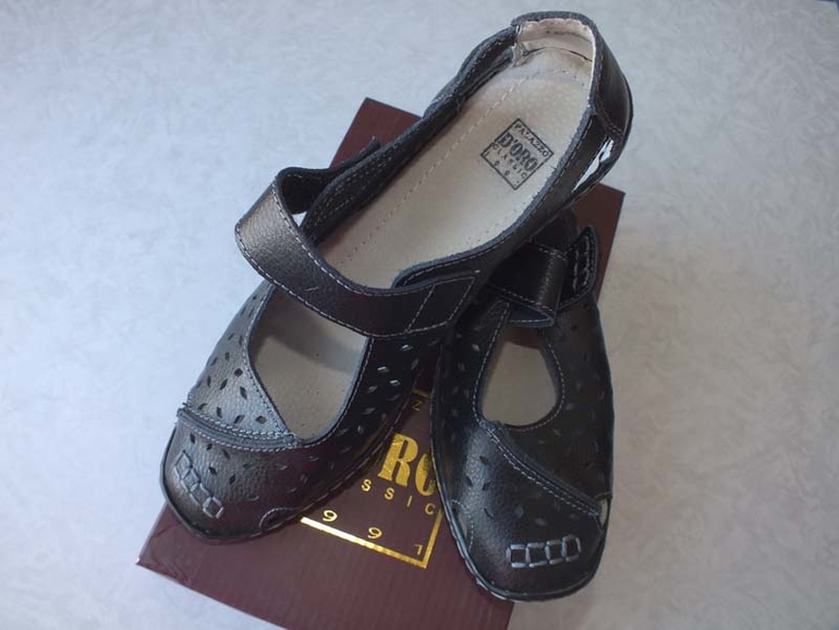 Пристраиваю легкие туфельки, очень мягкие, легкие, натуральная кожа, застежка на липучке. На чувствительные ножки самое то. Размер 37, по стельке 23 см. Цвет черный. Причина продажи: оказались маловаты, одевали 1 раз.