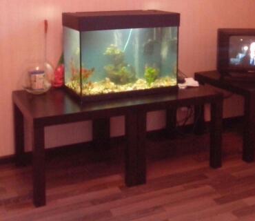продаю аквариум 70 литров,вместе с грунтом, украшеньками замком и рыбулями, гуппи ,2 мини сомика и коряжка, от сердца отрываю, но что делать....