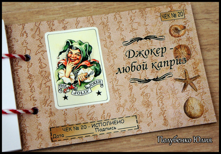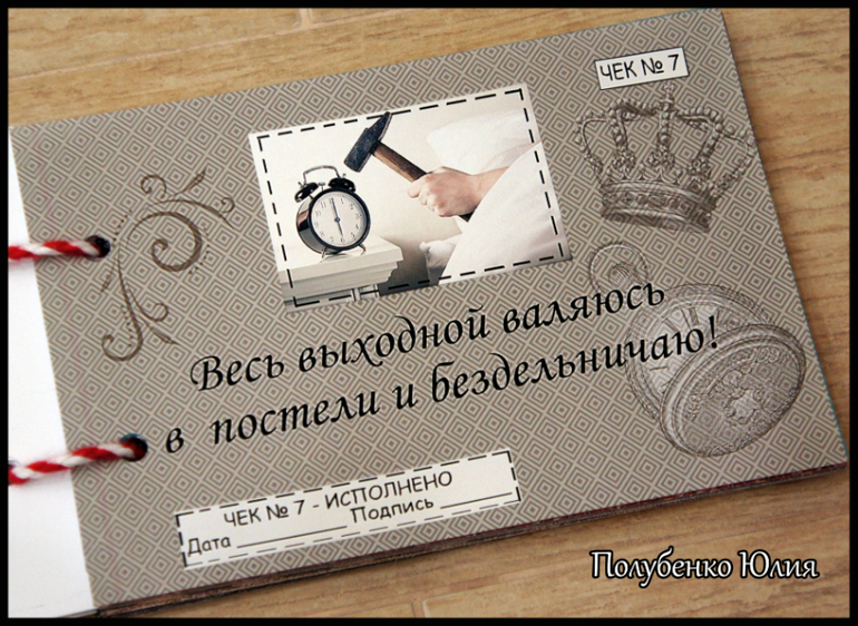 Своему мужу ЧЕКОВУЮ КНИЖКУ ЖЕЛАНИЙ я делала на 14 февраля.