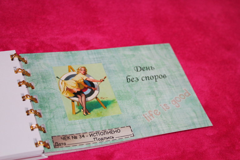 , мы сегодня получили твой замечательный подарок!!! Муж счастлив!!! Я не видела давно его под таким сильным впечатлением, как от твоей Чековой Книжки Желаний)))