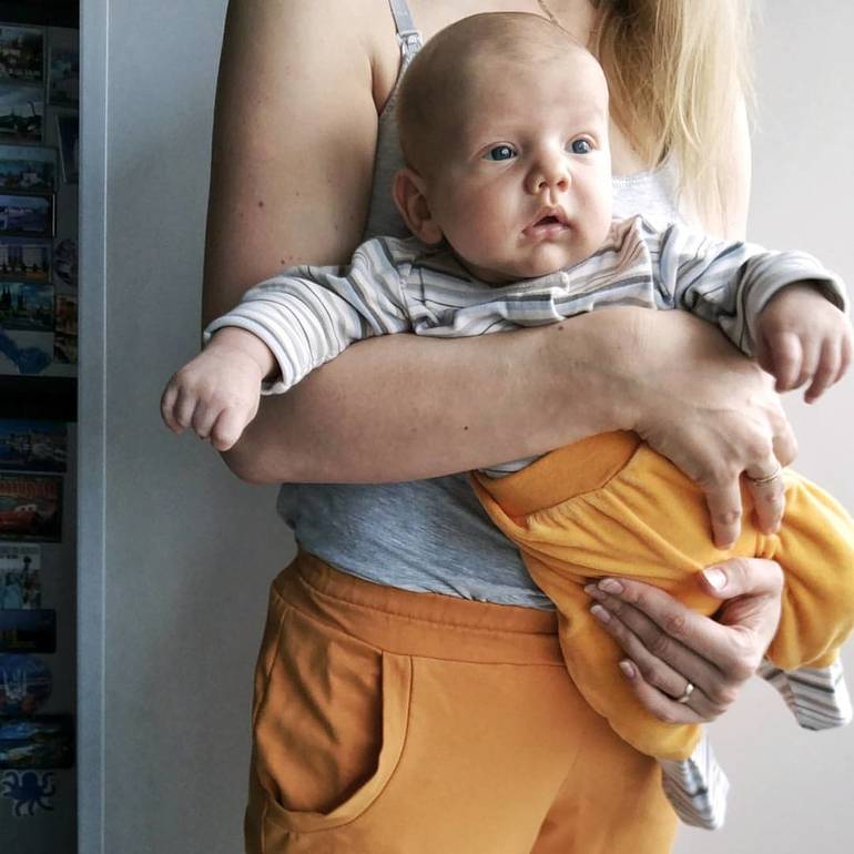 Потом руками-ногами машем, гуляем на маме, познаем мир.