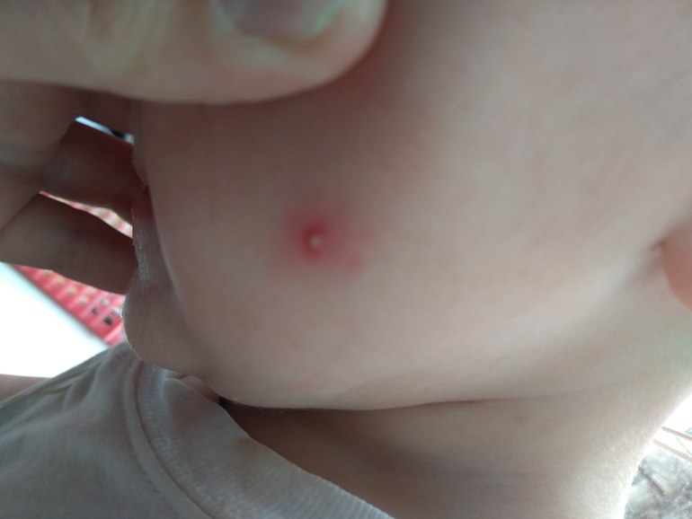 Всем привет! Ребенку 10 месяцев. Несколько дней назад появилось на щеке красное пятнышко, а сегодня уже прыщ с белой головой. Из еды ничего нового не вводили. Что это может быть?