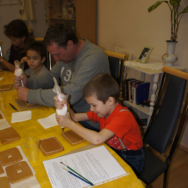 Хочу заметить, что хоть и кажется будто весь домик делали мамы, это не так. Очень многое дети делали сами. И контуры выводили, и заливкой красили, и посыпками украшали.