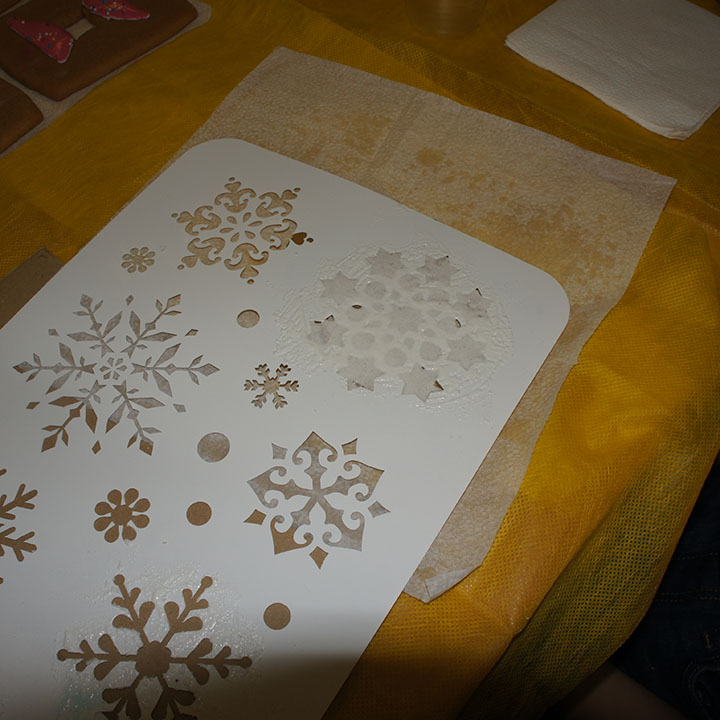 Заднюю стенку домика украшали с помощью трафарета. Быстро и просто)))