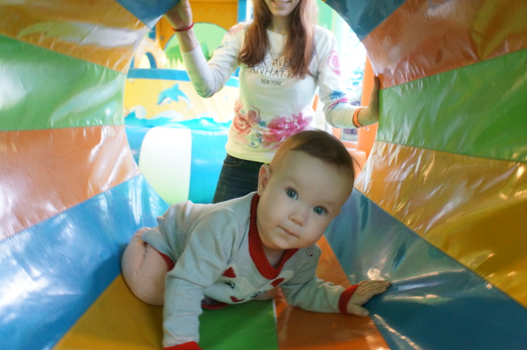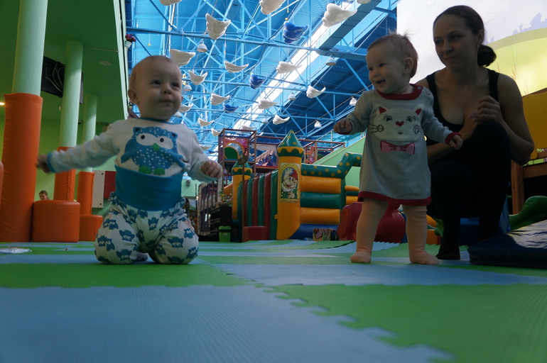 Батут нашим деткам еще рано,они просто ползали по нему))