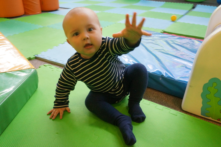 Горка понравилась,но сам еще равновесие не держит, надо придерживать))