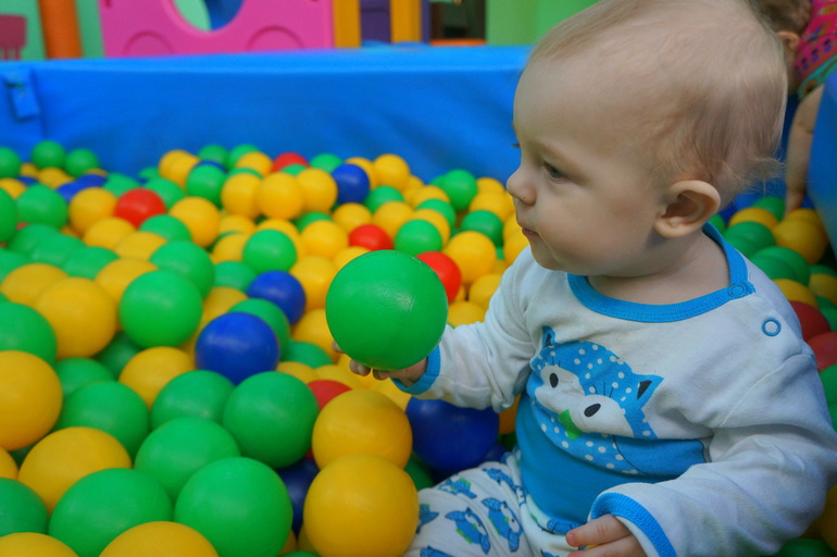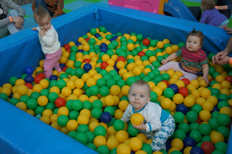 Бассейн с сухими шариками детки расценили как взаимообмен обслюнявленными предметами))