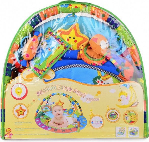Оснащен множеством занимательных элементов. Рекомендуемый возраст: 0-6 месяцев. Размер 92х92х52см.