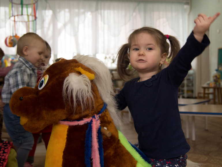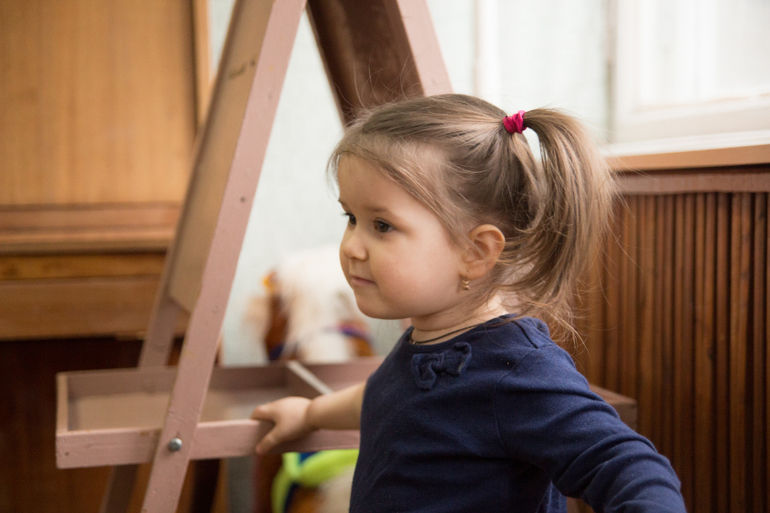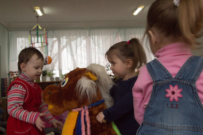 Прикольный у вас детсад!!!Мольберт и мягкие игрушки, какие-то карусельки хенд-мейд на заднем плане, сразу видно что там все для деток, а не как у нас для комиссии из гороно:(((