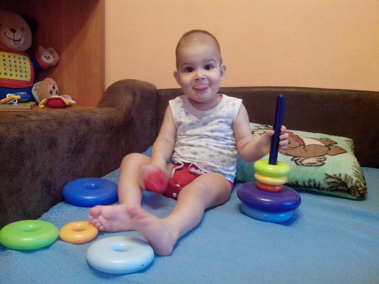 Очень любит книжки,у нас их не много,но если он про них вспомнит,то обязательно нужно пролистать все. И обязательно нужно доставать их с полки по одной, а как прочитаем одну, то нужно ее убрать на место и достать следующую. Пирамидку разбирает и с легкостью собирает,правда,не по порядку.