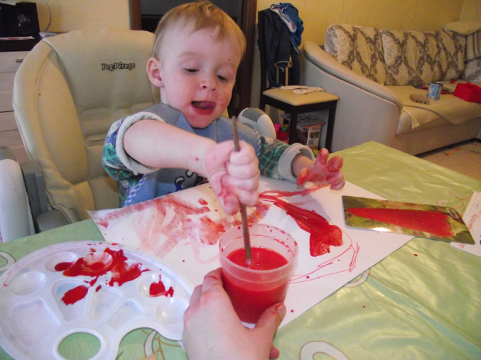 у меня племянник раскрашивал все от машинок до шкафов вот это я понимаю, вовремя не научился ...придешь в гости и сама вся в краске куда не дотронься...а так у нас даже от пластилина приходится отмываться..