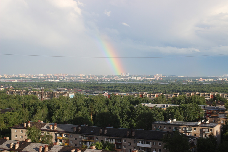 Лето только началось, а я видела уже 2 радуги..первую не поймала, вот только что "схватила" вторую!..Какое-то волшебное чувство, ощущение детства...Иногда полезно, стряхнуть проблемы, и обратить внимание на то, что нас окружает, на волшебство простых вещей...Может и вправду, в корне радуги зарыт горшочек с золотом? ..