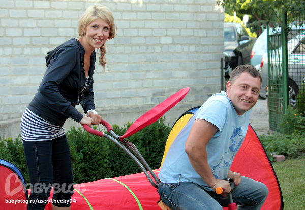 Мама и папа испытывают велосипед Ванюши)