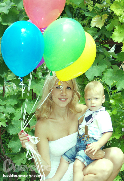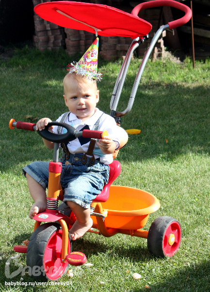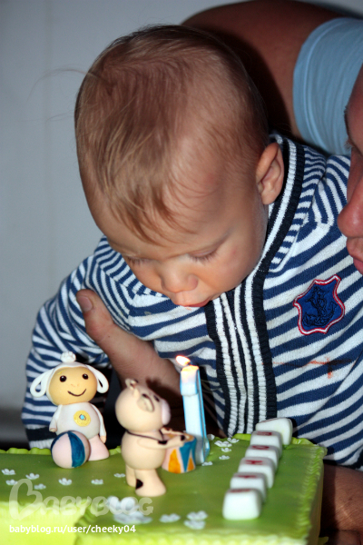 Праздник получился суперский! Ванюха вел себя великолепно, чем несказанно порадовал маму))) В годик мы умеем ходить, бегать, кое-что болтать (мама, папа, деда-дядя, ква-ква, ав-ав, поёт, показывает как делает машина и ещё разное). Ел уже много чего - мыло, гравий, мел, земля, цветы и прочие вкусности на даче)) Рост где-то 80 см, вес 10,500. Моя стройняшка)) И наши фотки с праздника!