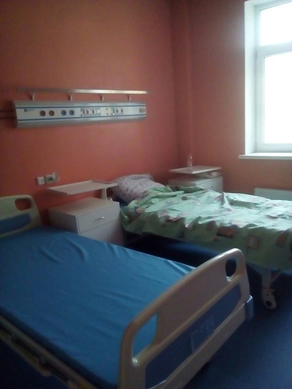 Про родыРасположение палат похоже на всех этажах, а я была и на 6 (патология беременных), и на 5 (рожают там и реанимация вроде тоже там, но могу запутаться, ибо ехала на каталке), и на 3 была (послеродовое) и вот теперь 4 этаж (отделение недоношенных, реанимация тоже на этом этаже). Выглядит примерно все одинаково:
