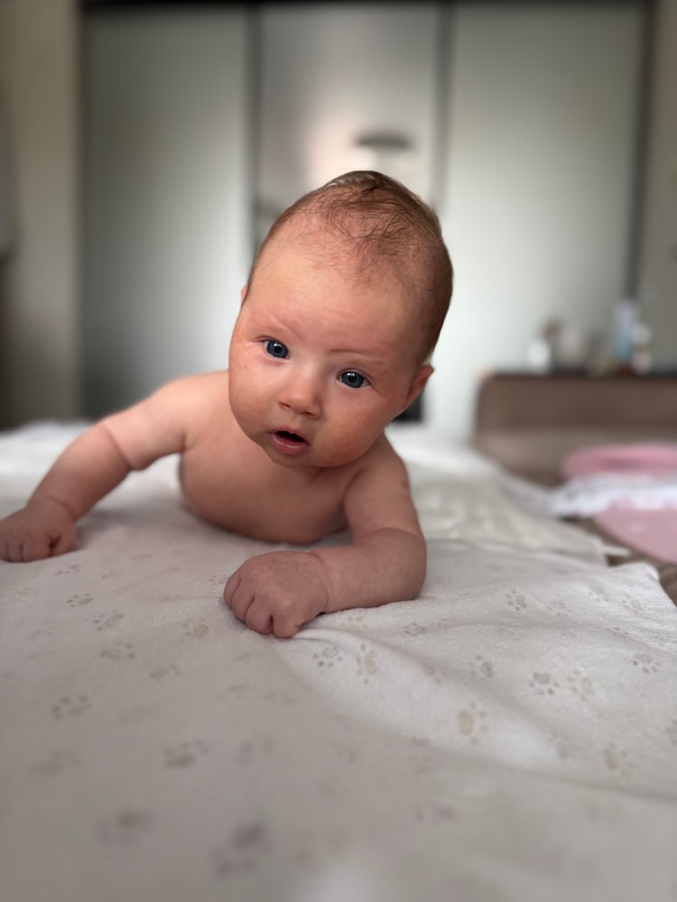 Как же летит время,мамочки! Наша девчонка так подросла,окрепла) во всю гулит,болтает и всё изучает) на днях нашла свой кулачок (пока только правый😹) но как же забавно она его рассматривает)Кушаем хорошо,как сказала врач - аппетитный ребёночек😅, рост 61,а весим уже 5400(набрали 1,1кг) и заметно округлились🙂↕️