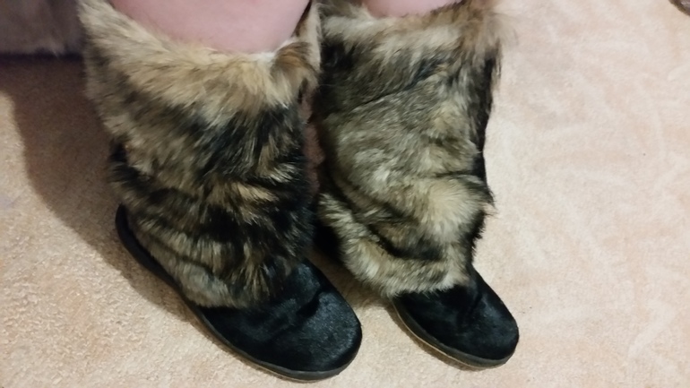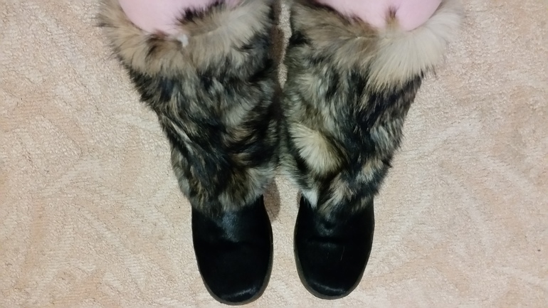 Унты натуральные мех 38 размер. Идут в размер на 25см стопы. Внутри овчина, сверху не помню чей мех. Сразу скажу их носила 1 год часто, последнии 2 года лежали без дела. Мех внутри не стоптан, внешне дефектов я не заметила. Унты теплые, на морозы отлично подойдут. Годик еще точно прослужат, может и больше, смотря как носить.