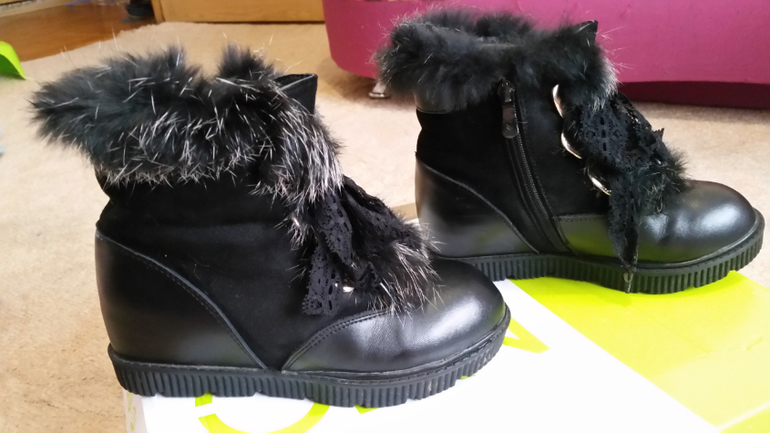Сапоги зимнии Сказка 33 размер, стелька 21.7см. Натуральная кожа и меховая отделка нат.мех, внутри шерсть. Состояние хорошее, но царапины есть, в основном сбоку, при носке не видно.