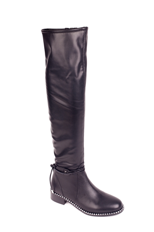 Цвет: черный Материал: натуральная кожа-стрейч Подклад: байка Примечание: Благодаря эластичности ботфорты подойдут на полноту голени от 36-45 см.