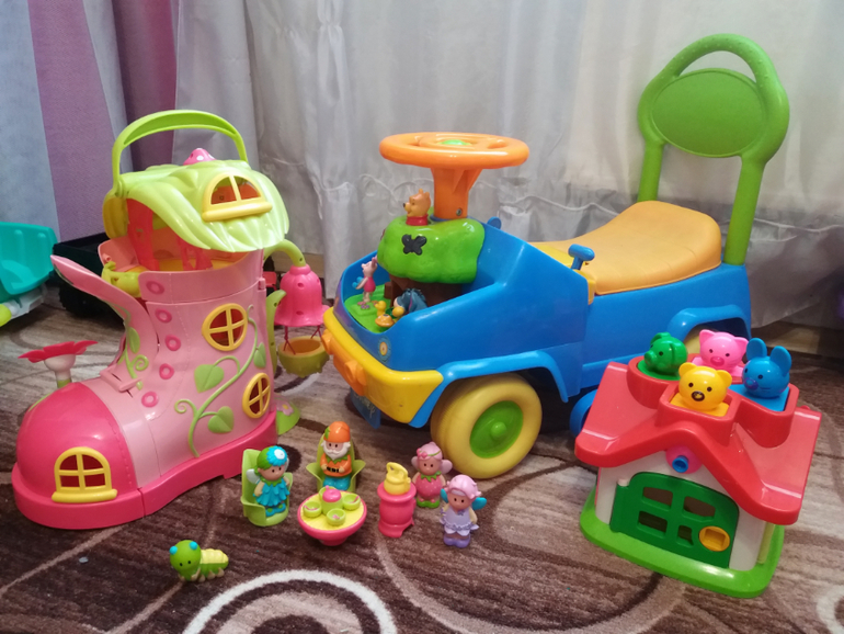 Продам пакетом игрушки домик сапожек ELC, машинка винни от Kiddieland и сортер домик. Сапожек в хорошем состояние, только нет одного окна, на машинке не работает только гудок. Можно все от 1 года. Продаю все пакет дешево.