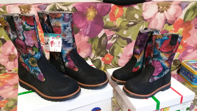 Сапожки новые Woopу 27 размер и 36 размер. Полностью натуральные, внутри мех. Стелька 27 размер 17см, 36 размер 23 см. Очень красивые, нам к сожалению не подошли обе пары.