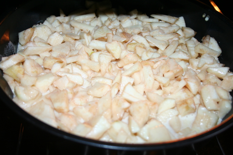 Как и писала автор рецепта, тесто делается проще простого, просто все смешивается миксером и готово. Лучше начать с сахара и яиц, а потом добавлять все остальное, но мне кажется большой разницы нет. Главное духовку сразу поставить на 200 градусов и яблочки почистить и порезать на мелкие кубики. Но это совсем просто, тем более с такими помощниками :-)