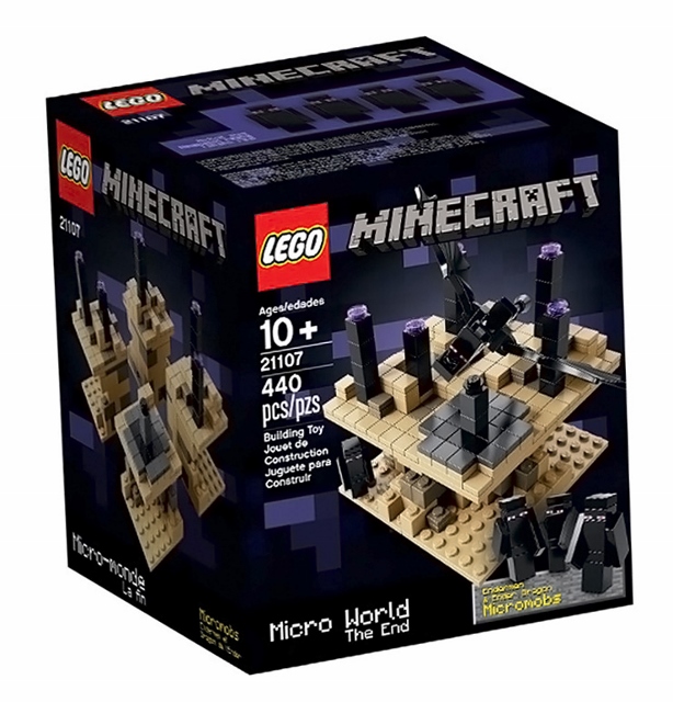 Новинка 2014г !- Лего Майнкрафт Micro World The End 21107 состоит из 440 деталей, выполненных с соблюдением характерного пиксельного дизайна Minecraft. К набору прилагаются 4 фигурки Странника края (Endermen) и Дракон (Ender Dragon)
