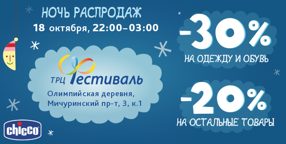 *Акция действует 14 ноября с 10:00 до 24:00 только в магазине Chicco в ТРЦ Афимолл.
