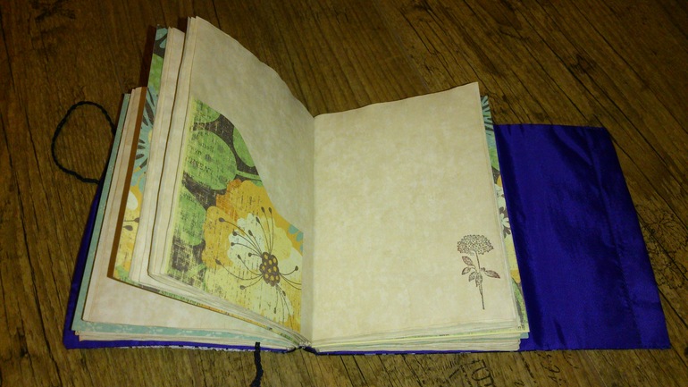 Блокнот: Листочки тонированы и частично проштампованы. Блок разделен на 3 части дизайнерской бумагой, есть 3 кармашка, закладка. Обложка из хлопка и подкладки, украшена кружевом, подвеской-ласточкой и брошкой-цветком, который можно снять и украсить свою одежду.