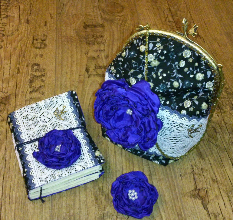 Сумочка: декор аналогичен блокноту. Замок Фермуар 16 см. Размер 19*23 см. Имеет кармашек внутри. Брошка цветок также снимается. Цепочка. Фурнитура цвета бронза.