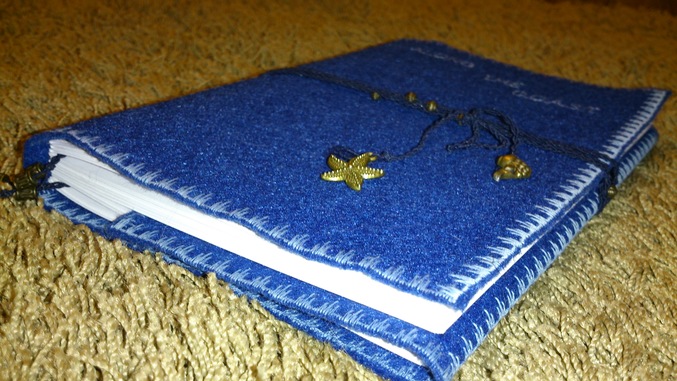 Два фетровых блокнотика. Первый - формата А5, синий, мужской на морскую тему, второй - карманный вариант, коричневый с волчицей.