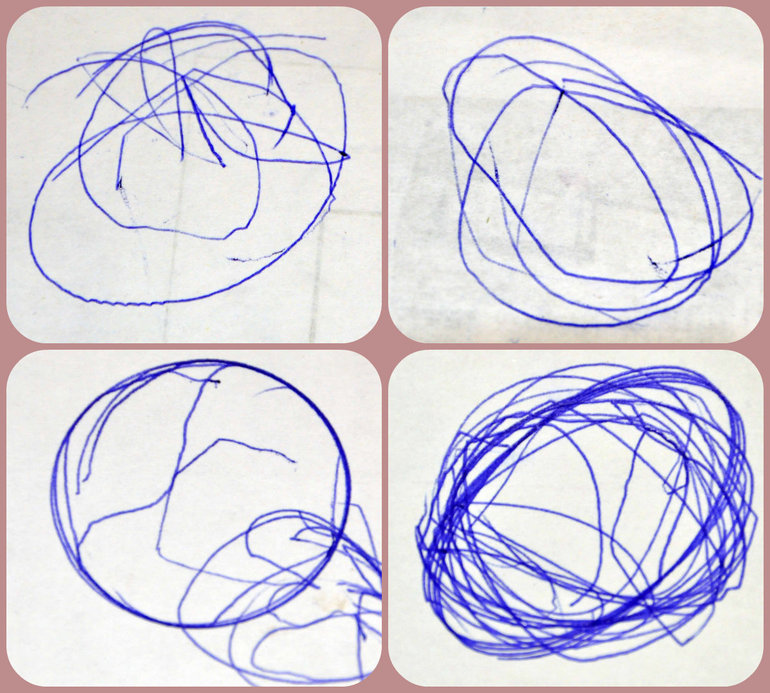 Авторучку желательно держать за средину, вертикально, не наклоняя в сторону. Не надо ею сильно давить на бумагу. Работая в таком положении, кисть получает полную свободу движения.