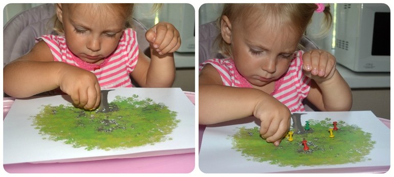 С помощью кнопок делали яблоки на яблоне, это одно из наших любимых занятий, справились быстро и уверено, моторику поразвивали.