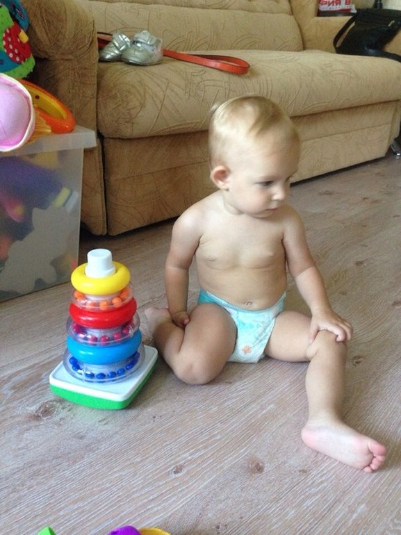 а на днях барышня впервые сама правильно собрала свою небольшую пирамидку.
