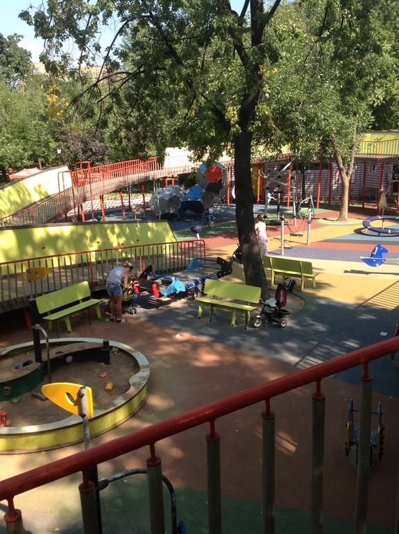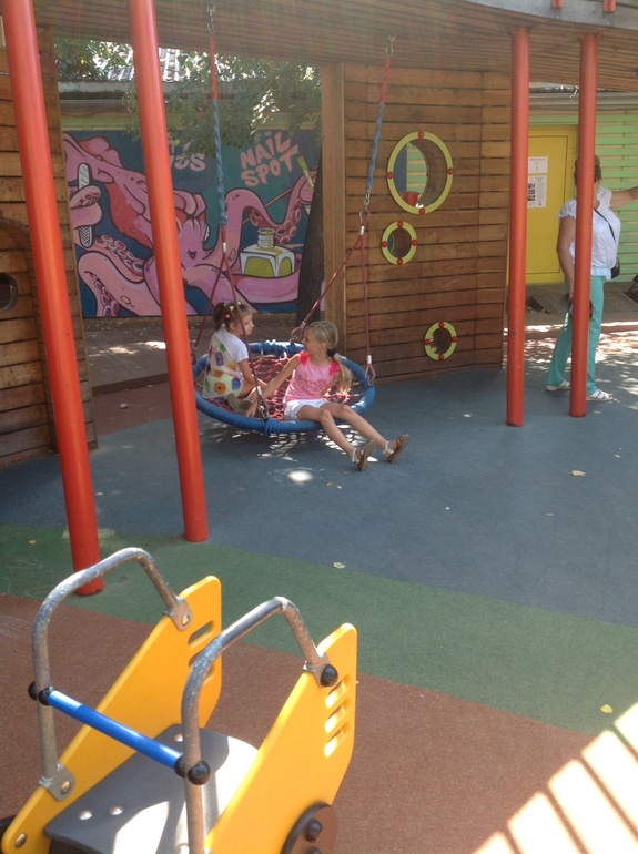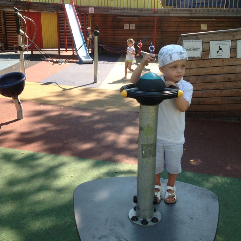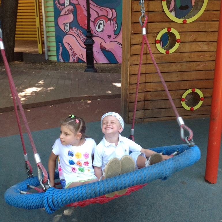 Присоединяюсь ко всем восторженным отзывам: два с лишним часа в этом детском городке пролетели незаметно, набегались мои от души, да и я ними - с удовольствием)))) Эля же так выразила свои впечатления от площадки:"Надо найти тех, кто ее создал и... расцеловать!"