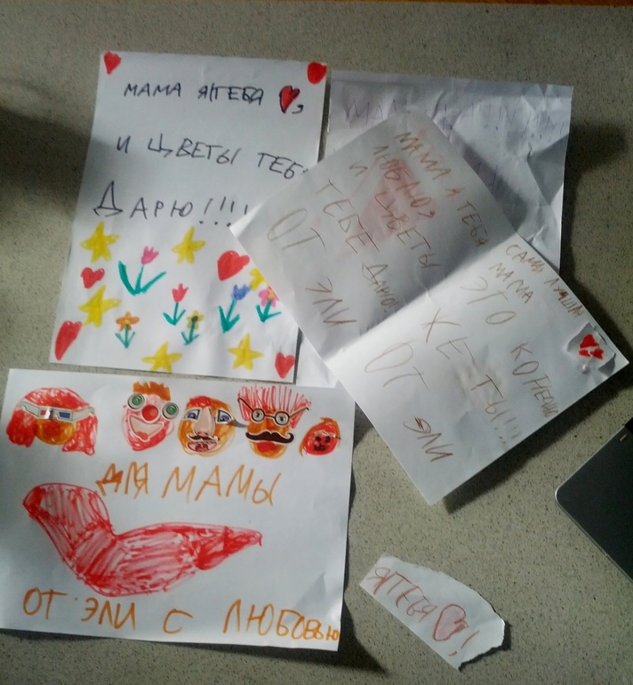 Постоянно приносит мне такие вот трогательные записочки-рисуночки, просто так, без повода - до слез умиляет