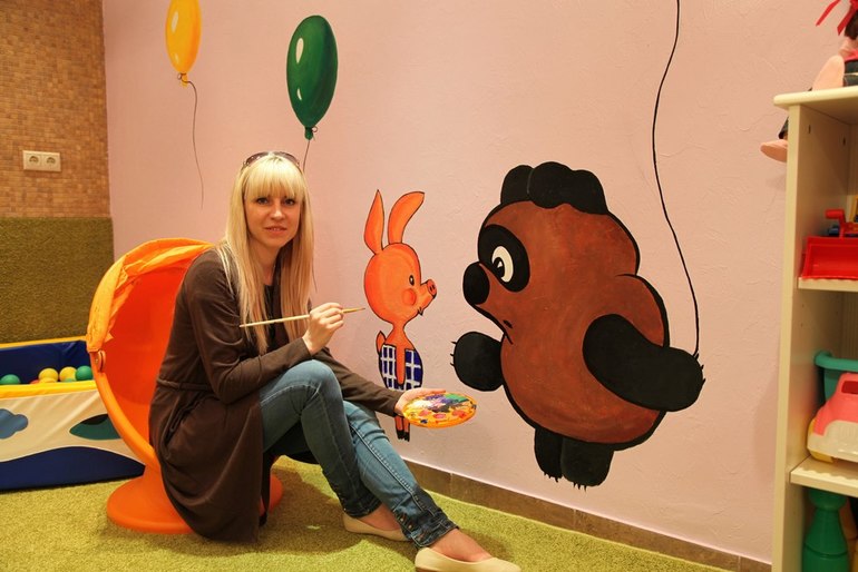 А вот за волшебные рисунки на стенах мы благодарим художников, которые помогли нам сделать комнаты для занятий ярче и интереснее: