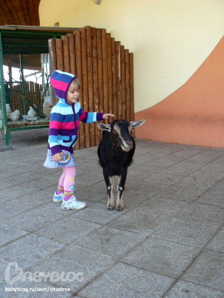 Есть в зоопарке свой небольшой детский уголок, где можно погладить домашних животных, а именно одну овцу и целый выводок разновозрастных коз.