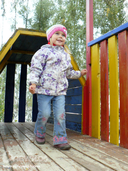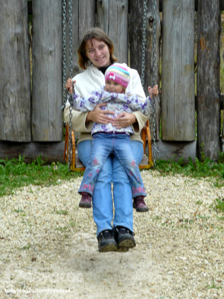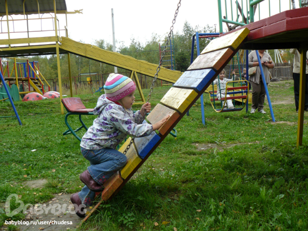 Залезть, держась за цепь, у дочи не получилось. Но она честно старалась