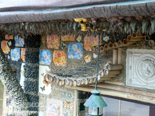 Есть среди построек и трактир. Сидеть можно либо внизу в уютном подвальчике, либо в одной из стилизованных беседок ("Гнездо орла", "Деревня друидов" и т.д. Каждое помещение неповторимо). Но мы заехали в музей сказок после кафе, где уже наелись круасанов и пирожных, так что посещение трактира оставили на следующий раз.