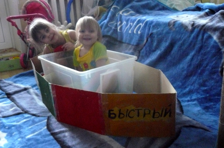 Сваяли с девчатами простенький корабль. Стены корабля дочки сами раскрашивали (а фотоаппарат мой, похоже, совсем накрылся)