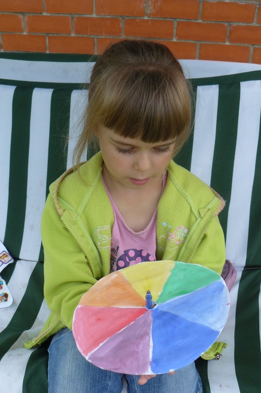 Зато Светик сделала еще и радужный диск, который ей понравилось вращать.