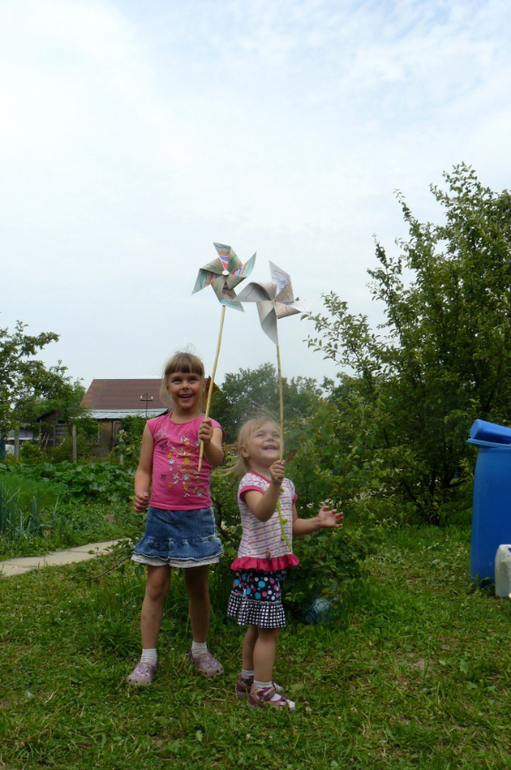 Вертушки очень увлекли девчат! Они носились по даче и ловили ветер. И так дня три :)