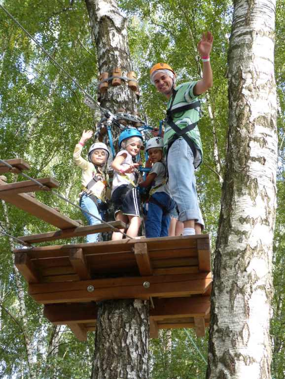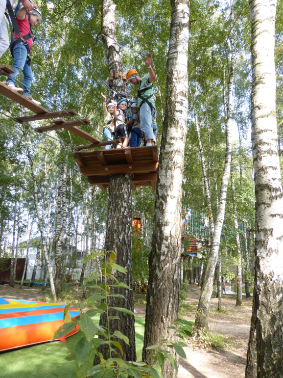После того как мы впервые побывали в парке "Дикие белки", Светик бредит веревочными тропами. На день рождения друга смело отправилась в путь вместе с друзьями и папой именинника.