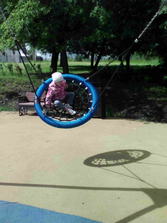 На многих площадках указано, что они для детей от 6 лет (хот есть и малышковые). Но Таню это не волнует! А у меня сердце периодически екало...